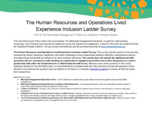 Posted By Chris July 3, 2025This survey includes questions that are best answered by human resources, operations, and senior leadership as they inquire about sensitive staff data, organisational policies, and other things that all staff are unlikely to be able to answer effectively. This survey does not include the additional all-staff questions that are essential to understanding an organisation’s engagement practices and is thus designed to be used in partnership with either the Comprehensive or Abbreviated all-staff survey, found in our tools library. Because some of the questions in this survey reference results from the All-Staff survey, it is recommended to complete those first. Also note that we have left questions on the all-staff survey that concern protocol (such as whether or not there is a consistent grievance protocol) to ensure all staff can share their perspectives.